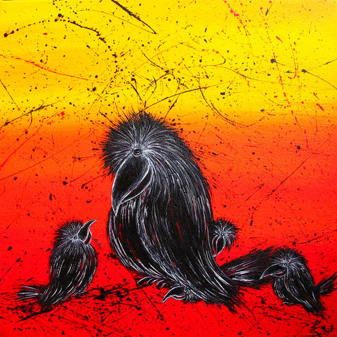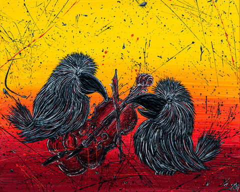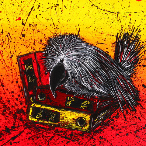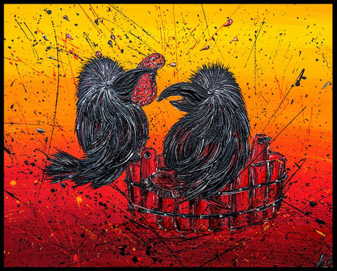 Die Raben-Kunstdruck-Edition umfasst mittlerweile 41 Motive aus den Original-Serien "Glückliche Pechvögel" und "Beschwipste Rabenvögel", die auf Leinwand gedruckt werden und in einer limitierten Auflage von je 50 bzw. 30 Stück erscheinen. Jeder Druck ist handsigniert.